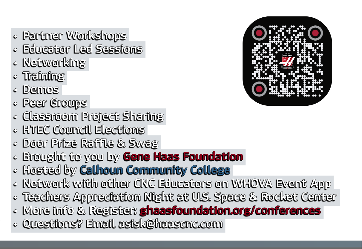 HTEC educators, do you have a CNC machining related project, pedagogy, or research topic you would like to share with your fellow instructors at this year’s HTEC national conference? If so, the council would like to hear from you! The HTEC Council has officially opened the Call for Presentations for this year’s HTEC National Conference educator led breakout sessions. This year’s conference will be hosted by Calhoun Community College in Decatur, Alabama, July 27-30. 2026. If you wish to be part of the 2026 HTEC conference proceedings and present your work during an educator led breakout session, the council needs the google form submission and abstract submitted by the deadline of Friday, May 1st.