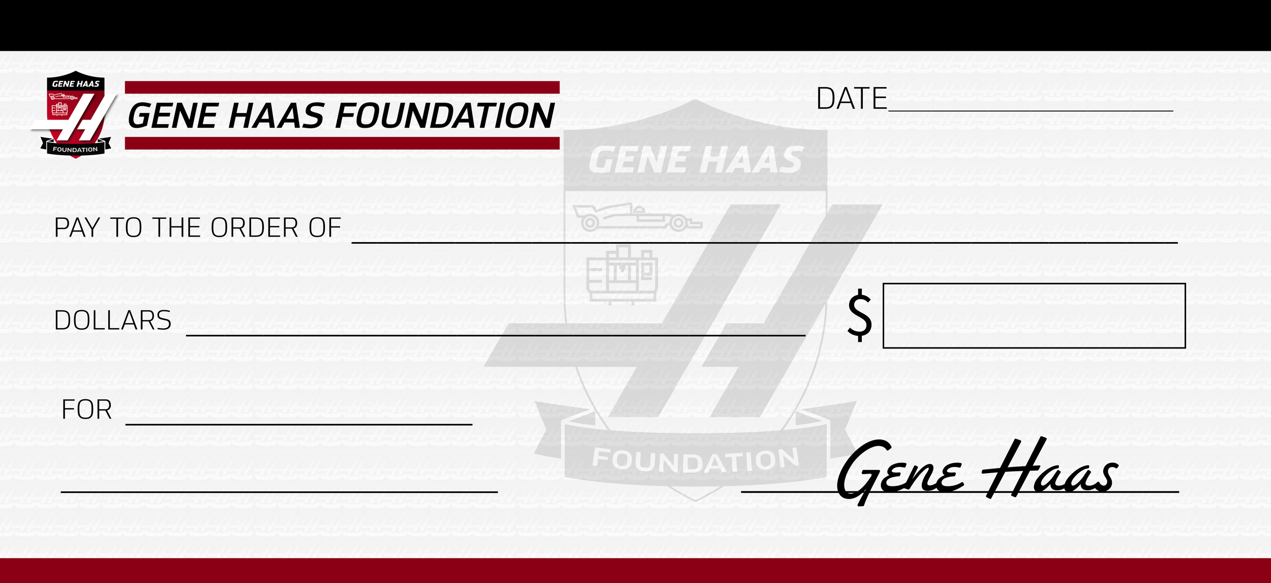 We have editable versions of the Gene Haas Promotional Check available for our grantees to use.